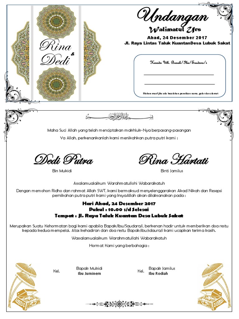 Contoh Undangan Kenduri Akad Nikah - Contoh Isi Undangan